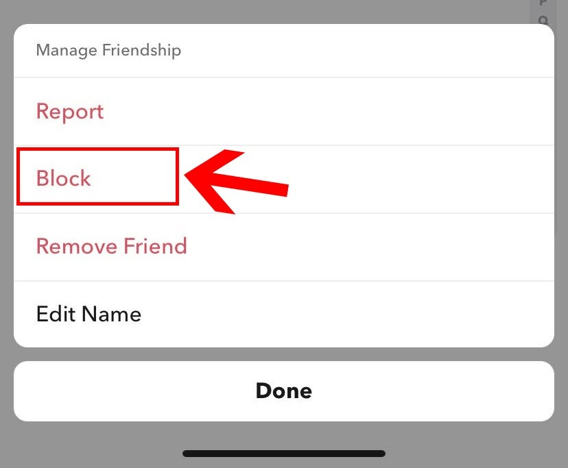 - Step 4: Choose “Snapchat block friend” and confirm the action.