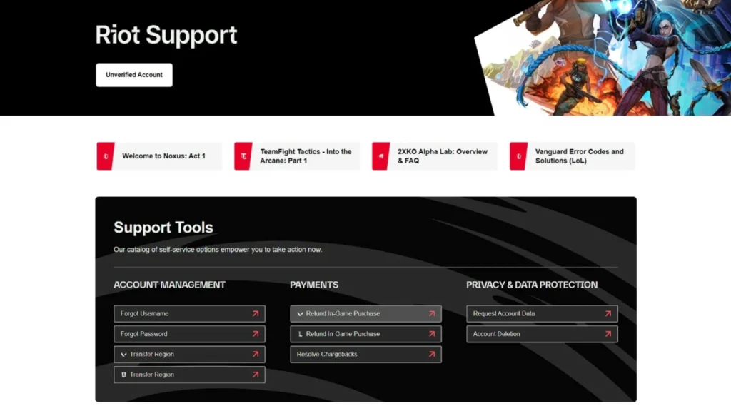 - Go to Riot’s official support site (support-valorant.riotgames.com).