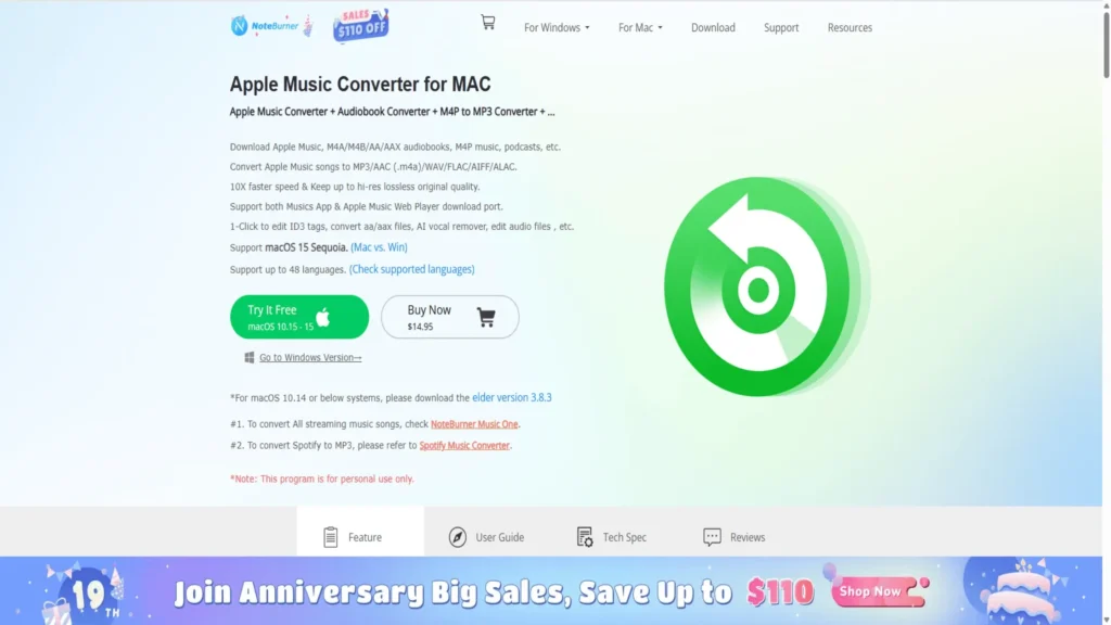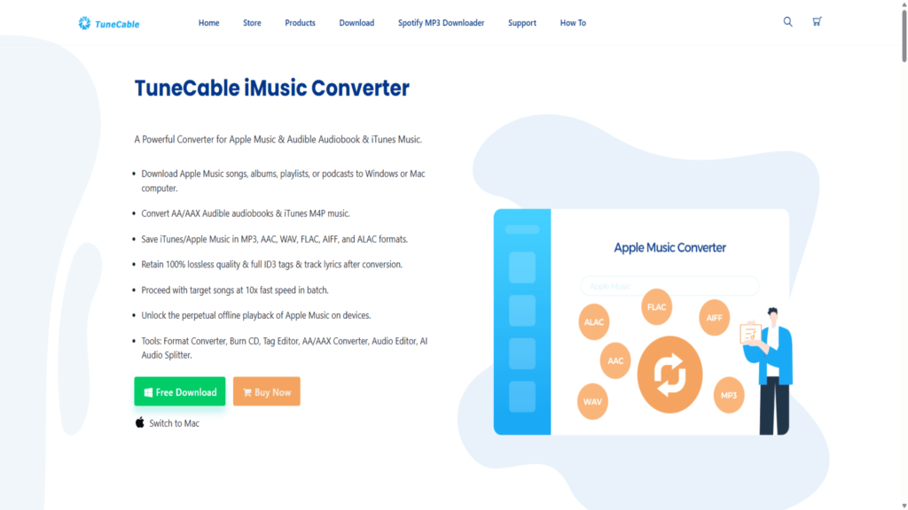 - Converts Apple Music, iTunes purchases, Audible, and audiobooks to MP3, AAC, and FLAC.