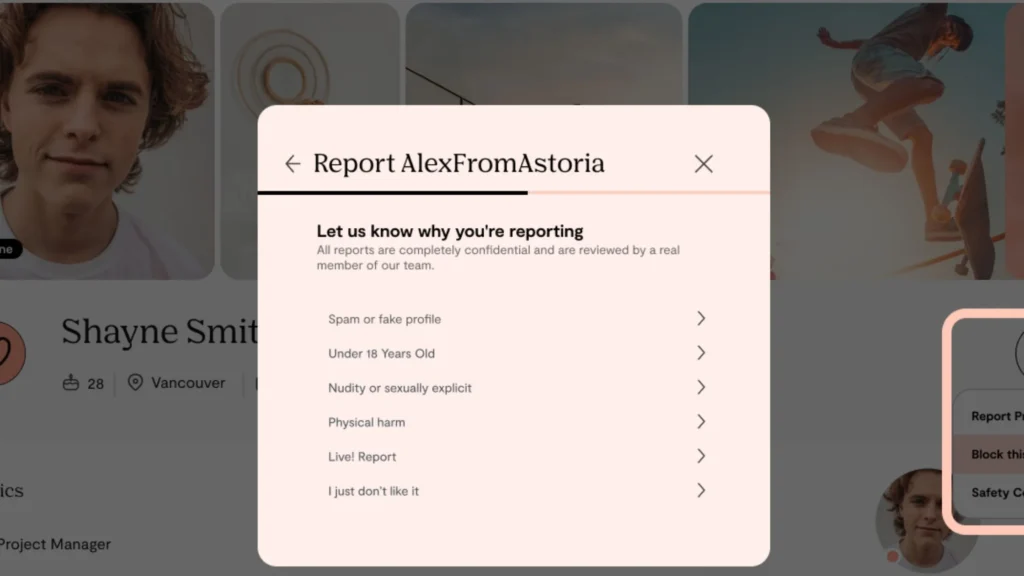 Using VPN to hide your IP and stay safe on public Wi-Fi can offer an extra layer of protection. Stay vigilant, and report any suspicious behavior or profiles directly to POF to keep yourself.