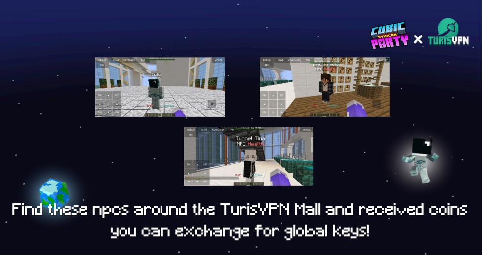 Weโre thrilled to announce our latest collaboration with INCRO on their newest Minecraft project, Cubic Party! Building on our successful past partnerships, this collaboration brings an even more immersive and community-driven experience. Centered around the grand debut of the TurisVPN Mall in-game. Together with INCRO, weโve crafted a vibrant virtual space that brings the TurisVPN brand and community spirit to life inside Minecraft.